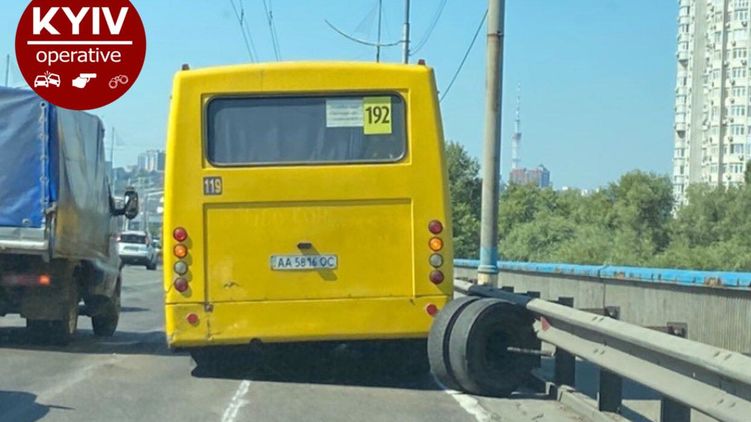 Во вторник, 11 августа, на Северном мосту Киева произошло ДТП с участием маршрутки. У транспортного средства внезапно отлетела колесная ось.