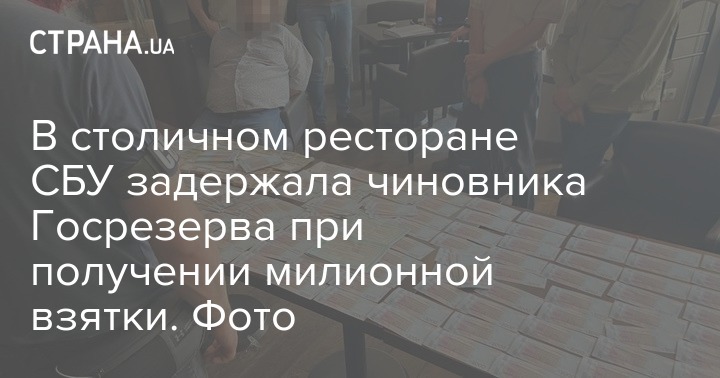 В столичном ресторане СБУ задержала чиновника Госрезерва при получении милионной взятки. Фото