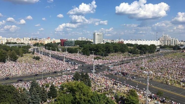 На митинг против президента Беларуси Александра Лукашенко, который сейчас проходит у Стелы в Минске, собралось больше 100 тысяч человек.