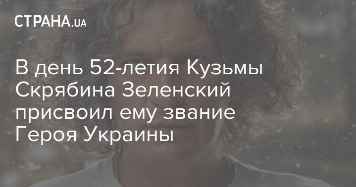 Президент Владимир Зеленский присвоил звание Герой Украины трагически погибшему в феврале 2015 года музыканту, фронтмену группы "Скрябин" Андрею Кузьменко Об этом на своей странице в соцсети написал глава государства.