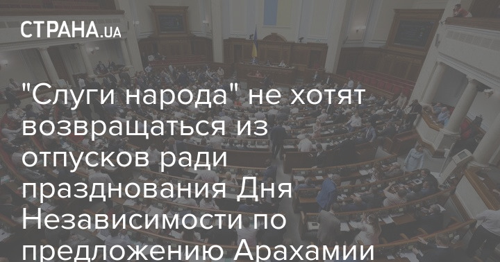В партийном чате "Слуг народа" глава фракции Давид Арахамия написал, что народным избранникам необходимо обязательно быть в Киеве 24 августа, чтобы принять участие в торжественных мероприятиях, связанных с Днём Независимости Украины.