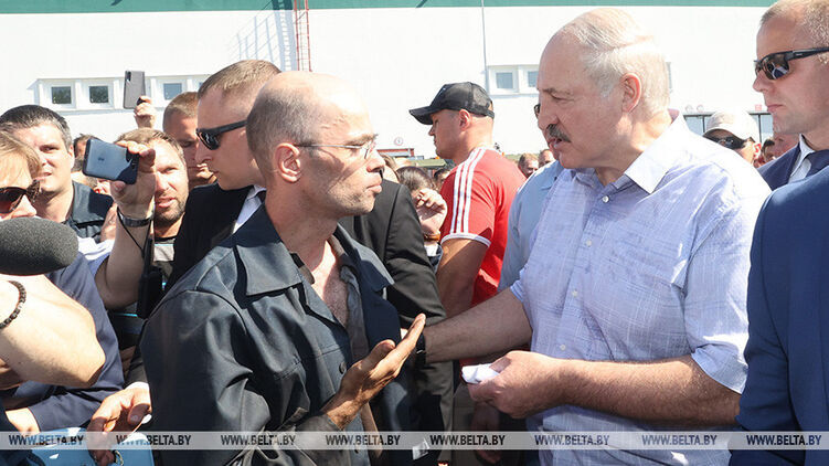 Вчера, 17 августа Бацька встретился с рабочими Минского завода колесных тягачей. Фото БелТА