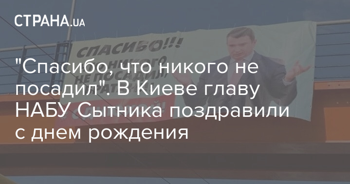 С огромного баннера на киевлян смотрит разводящий руками Артем Сытник, а рядом с ним - благодарственная надпись: "Спасибо, что никого не посадил, братан!!! С днюхой!".