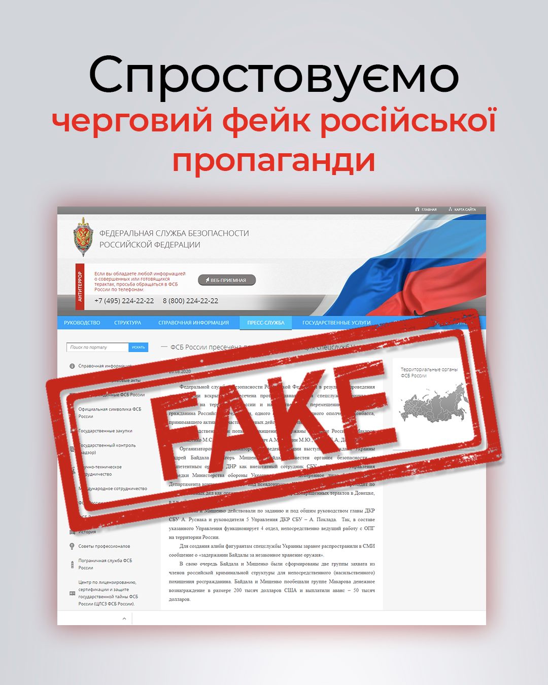 Однако позже в СБУ обнародовали комментарий, где назвали сообщение ФСБ фейком: