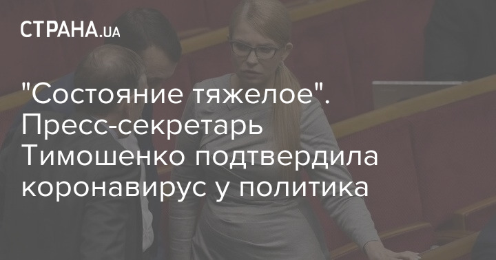 Марина Сорока, пресс-секретарь украинского нардепа и лидера партии "ВО "Батькивщина" Юлии Тимошенко подтвердила, что политик заразилась коронавирусом. При этом состояние ее тяжелое - сильно повышена температура.