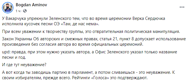 upd: правда, при этом нужно указать автора, а Офис Зеленского указал только название песни и год.