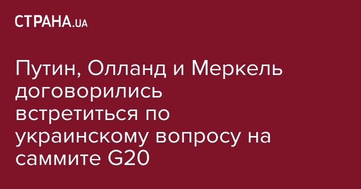 Президент России Владимир Путин, канцлер Германии Ангела Меркель и президент Франции Франсуа Олланд договорись обсудить украинский вопрос во время саммита G20, который пройдет в Китае 4–5 сентября.