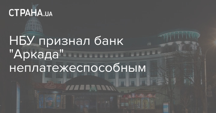 Национальный банк Украины принял постановление, согласно которому киевский банк "Аркада", 6 августа попавший в число проблемных, причисляется к категории неплатежеспособных. Это первая временная администрация в 2020 году.