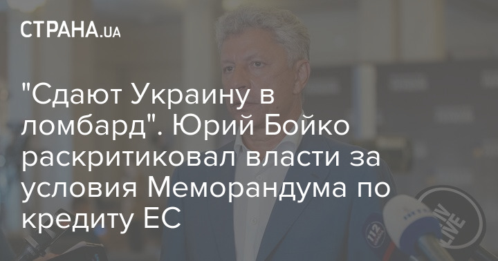 "Сдают Украину в ломбард". Юрий Бойко раскритиковал власти за условия Меморандума по кредиту ЕС