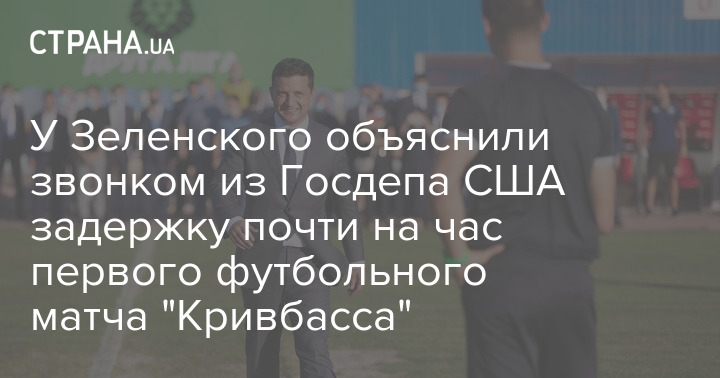 В Офисе президента Украины объяснили, почему Владимир Зеленский на 52 минуты опоздал на футбольный поединок Кубка Украины между командами "Кривбасс" и "Черкащина" в Кривом Роге, где его ждали много людей. Причиной стал срочный разговор с Госсекретарем США Майком Помпео.