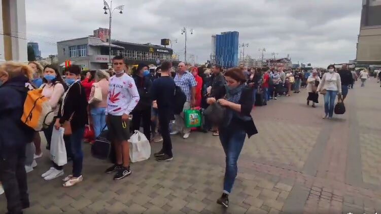 В Киеве у станции метро "Вокзальная" в пятницу утром, 28 августа, собралась огромная очередь желающих воспользоваться услугами метрополитена. Толпа людей с чемоданами растянулась по всей длине привокзальной территории. Видео происходящего опубликовал в соцсети пользователь Александр Гусев.