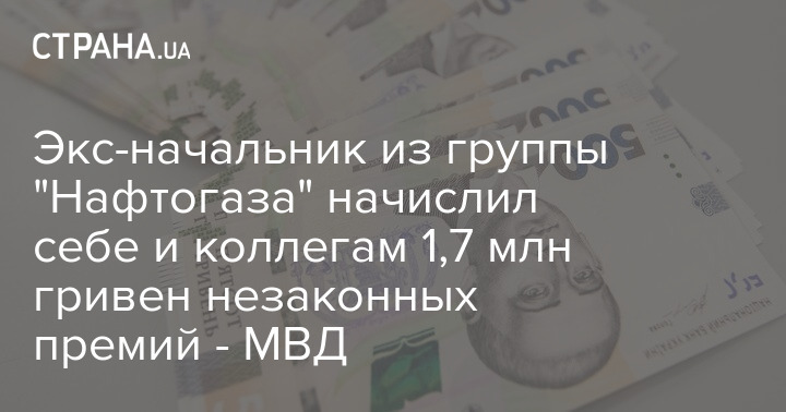 Бывший руководитель предприятия, которое учредило НАК "Нафтогаз" подозревается в растрате 1,7 миллионов гривен. Эти деньги были выплачены в качестве премий, более 900 тысяч из них получил сам чиновник.