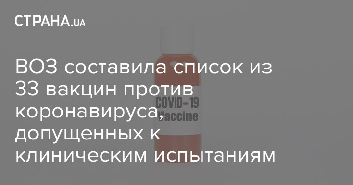 Всемирная организация здравоохранения составила список из 33 вакцин от коронавируса, допущенных к клиническим испытаниям. Разработчиками препаратов являются фармацевтические компании и научные институты из 19 стран мира.