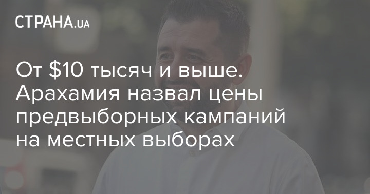 Лидер фракции "Слуга народа" Давид Арахамия заявил, что стоимость предвыборной кампании для претендента на пост местного или сельского головы варьируется от 10 тысяч долларов и выше.