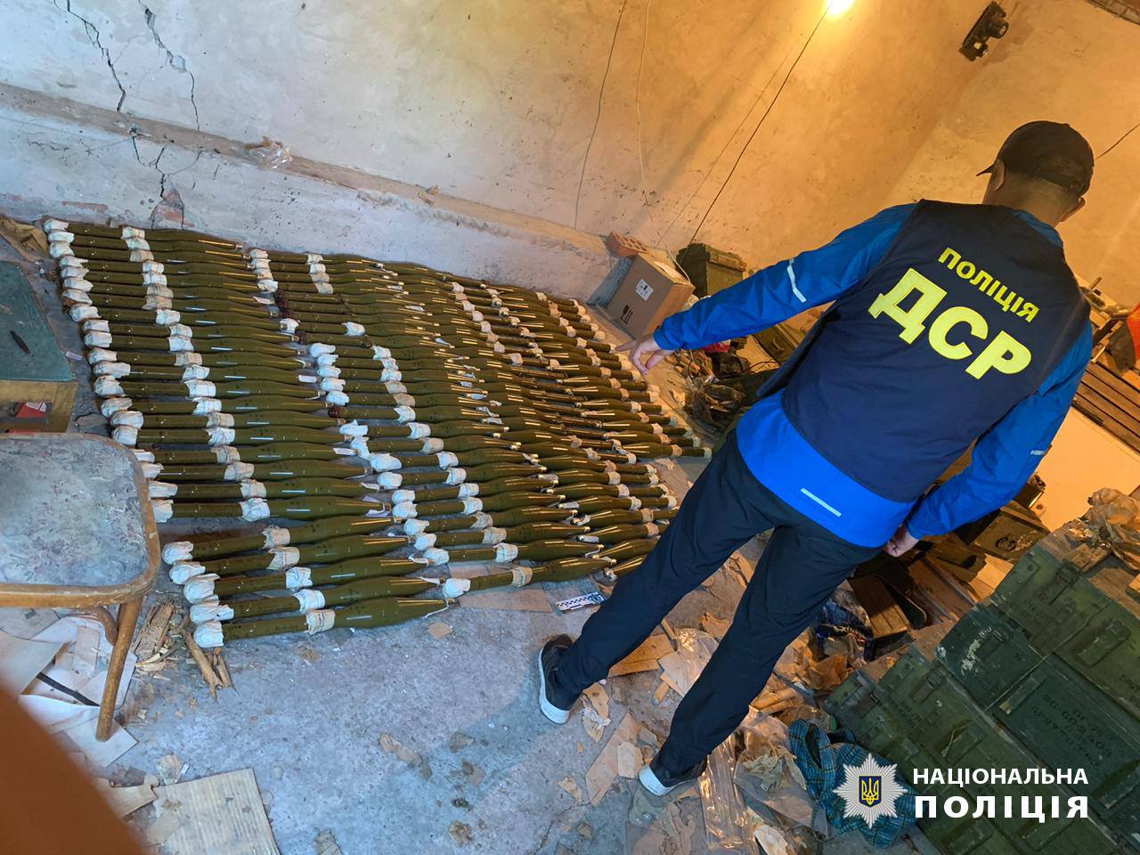 "В частности, в подвальном помещении гаража изъяли 472 корпуса ручных гранат различного типа, 765 запалов типа УЗРГМ и УЗИ, более 660 гранатометных выстрелов различного типа, 122 пусковых ракетных двигателя, 49 реактивных противотанковых гранат различного типа, 66 ручных дымовых гранат, 20 сигнальных, осветительных, минометных и противопехотных мин, выстрел с осколочно-фугасным снарядом. Кроме того, среди изъятого 55 ящиков с патронами разного калибра - почти 62 тысчи патронов, а также тротиловые шашки - общий вес 5 кг, взрывные устройства, другие боеприпасы и вспомогательные военные средства", - говорится в сообщении.