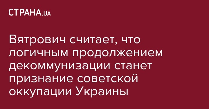 Логичным продолжением процесса декоммунизации в Украине станет признание советской оккупации. Об этом в эфире 5-го канала заявил глава Украинского института национальной памяти Владимир Вятрович.