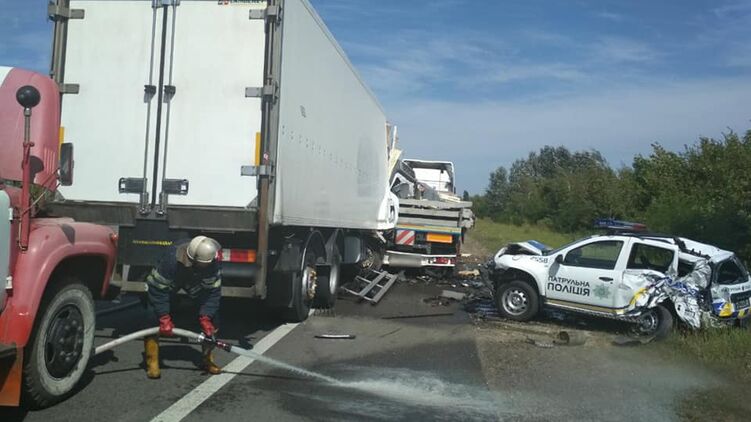 "Сначала он въехал в служебный автомобиль, а затем - столкнулся с грузовиком. В результате ДТП, патрульные полицейские получили травмы - их госпитализировали в больницу", - пишет полиция.