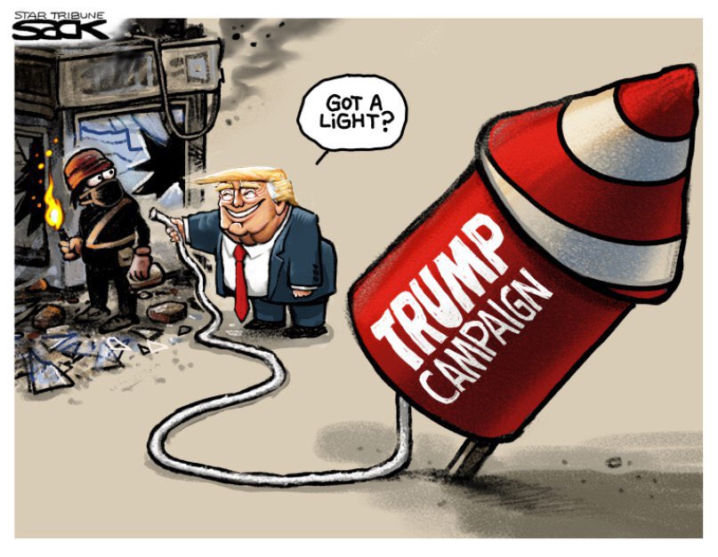 В американской прессе появились карикатуры о том, что протесты помогают "рвануть" кампании Трампа