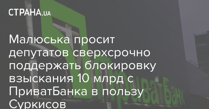 Министр юстиции Украины Денис Малюська просит народных депутатов сверхсрочно принять закон, который заблокирует взыскание 10 млрд гривен с ПриватБанка в пользу братьев Суркисов.