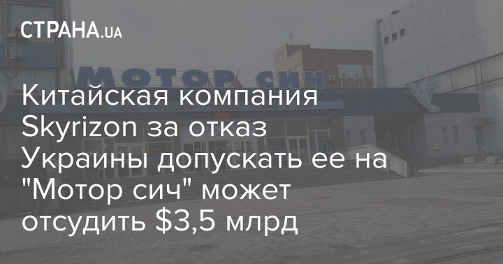 Инвесторы из китайской компании Skyrizon уведомили украинское правительство о планах начать международный арбитраж против государства Украина. Причиной послужил недопуск инвесторов к предприятию "Мотор сич", чьи акции Skyrizon приобрела четыре года назад.
