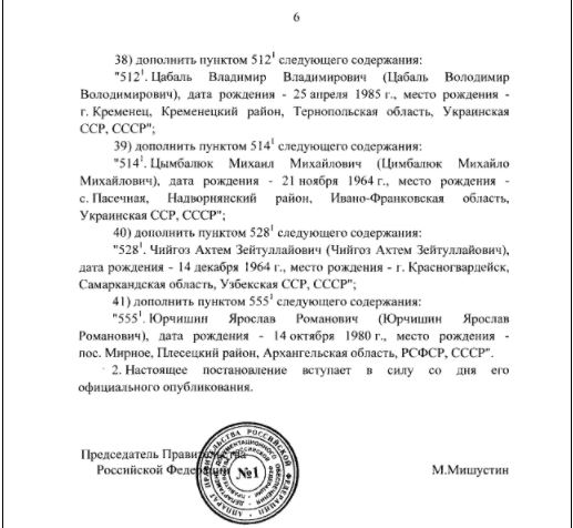Также в список внесли экс-лидера партии "Голос" Святослава Вакарчука, главу Независимого профсоюза горняков Украины Михаила Волынца, советника первого вице-премьера Степана Кубива, нардепа Киру Рудик. Всего в список добавили 42 человека.