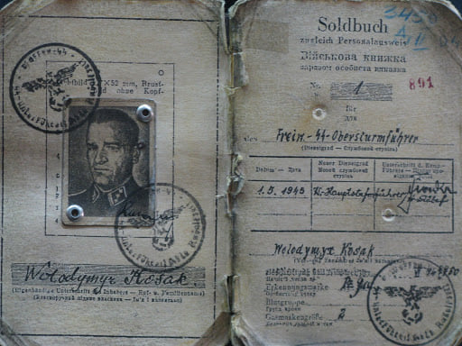 Как известно, Владимир Козак в 1943 году, с началом набора добровольцев в дивизии "Галичина", поступил в дивизию, где окончил старшинскую школу. За бои под Бродами и при обороне австрийского замка Гляйхенберг был награжден Железным крестом. В конце войны вместе с остатками дивизии сдался в американский плен. После освобождения поселился в Мюнхене, где и прожил остаток жизни.