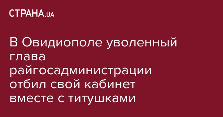 Уволенный по распоряжению президента Петра Порошенко 28 июля с должности председателя Овидиопольской районной государственной администрации Игорь Литвинюк захватил свой рабочий кабинет, явившись в здание в сопровождении титушек. Об этом сообщает Думская.