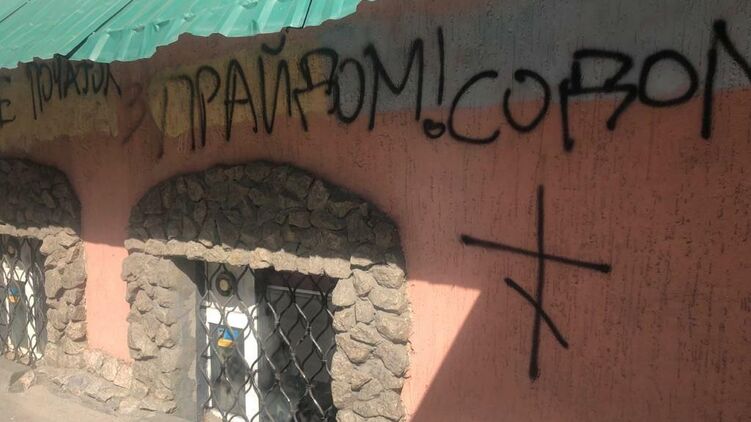 "Первый раз нам нарисовали крест на стене, написали "Содом" и бросали яйца в двери. Второй раз видно на камерах, как человек с мужскими гениталиями писает в баночку, потом выливает мочу на двери. Тоже забросали яйцами и написали "Це тільки початок з Прайдом". И вчера разбили окна. Все три случая происходили с часу до трех ночи", - сообщила она.
