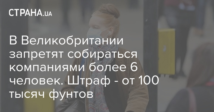 Согласно новым правилам, будут введены ограничения на собрания более шести человек. Данный запрет вступит в силу на следующей неделе, и нарушители могут быть оштрафованы на сумму от 100 фунтов стерлингов (около 3,6 млн гривен - Ред.).