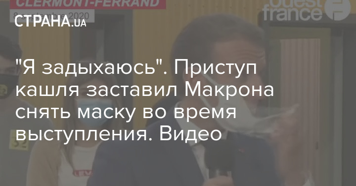 "Я задыхаюсь". Приступ кашля заставил Макрона снять маску во время выступления. Видео