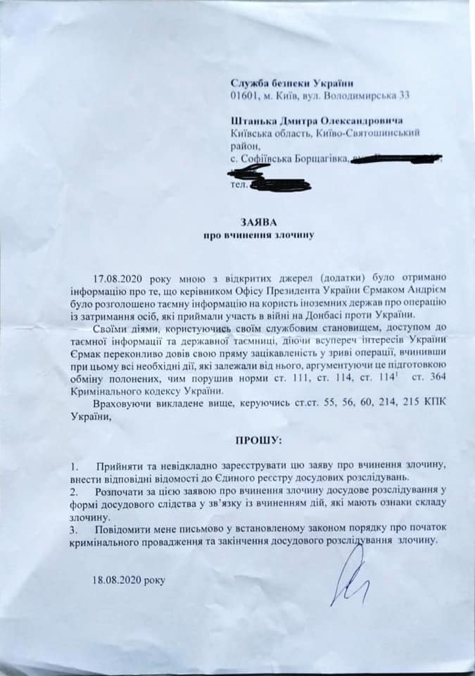 В среду, 9 сентября, Шевченковский суд Киева обязал СБУ открыть дело против главы Офиса президента Андрея Ермака.