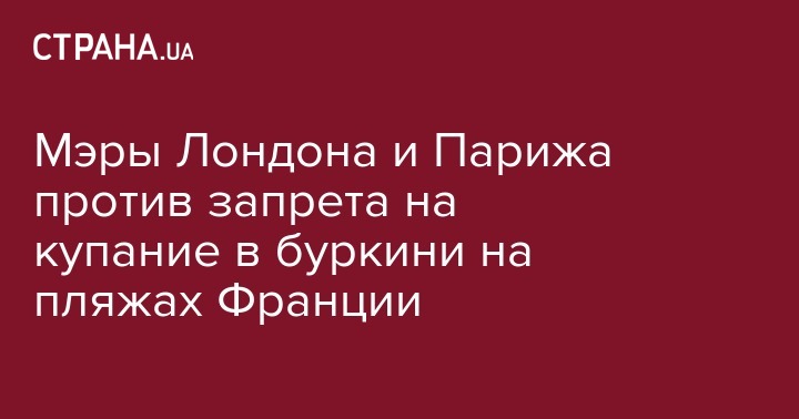 Мэры Лондона и Парижа Садик Хан и Анн Идальго подвергли критике решение нескольких приморских городов во Франции запретить закрывать тело купальными костюмами для мусульманок, известными как буркини, сообщает ВВС.