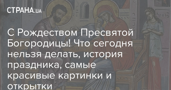 "Страна" рассказывает историю этого светлого праздника, как его провести, о чем молиться и что сегодня нельзя делать. Еще, разумеется, мы публикуем красивые открытки и гифки с Рождеством Пресвятой Богородицы.