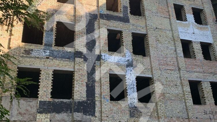 Огромная свастика появилась на недострое в Киеве, расположенном неподалеку от Бабьего Яра, где в годы Второй Мировой были расстреляны более 100 тысяч евреев. Черный нацистский символ раскинулся на три этажа заброшенного здания. В распоряжении "Страны" появилось фото с места события.
