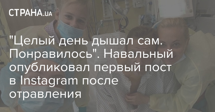 Навальный поделился, что вчера уже смог самостоятельно дышать. Фото: Instagram