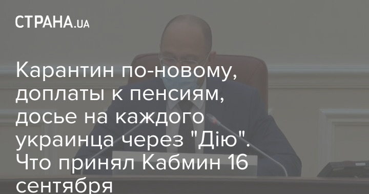 Карантин по-новому, доплаты к пенсиям, досье на каждого украинца через "Дію". Что принял Кабмин 16 сентября