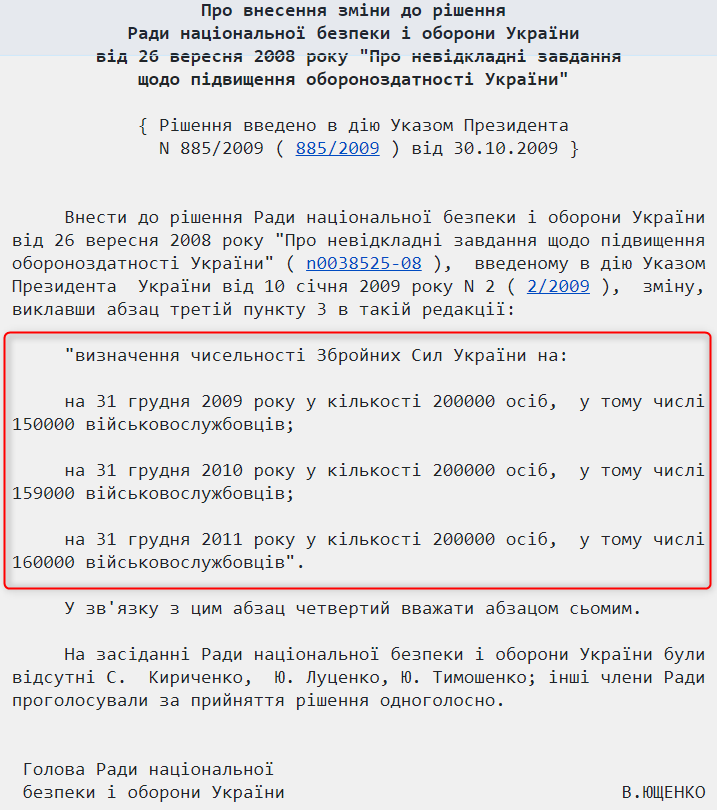 То есть и Ющенко по факту утвердил не наращивание, а сокращение Вооруженных сил - причем в том же темпе, что и Янукович: на 40 тысяч человек.