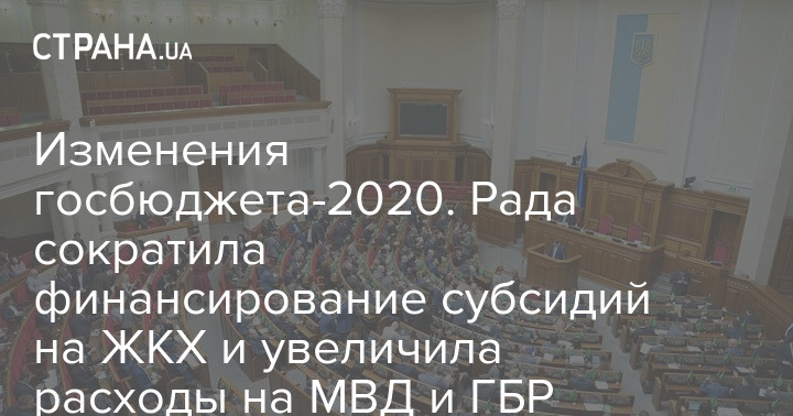 Изменения госбюджета-2020. Рада сократила финансирование субсидий на ЖКХ и увеличила расходы на МВД и ГБР