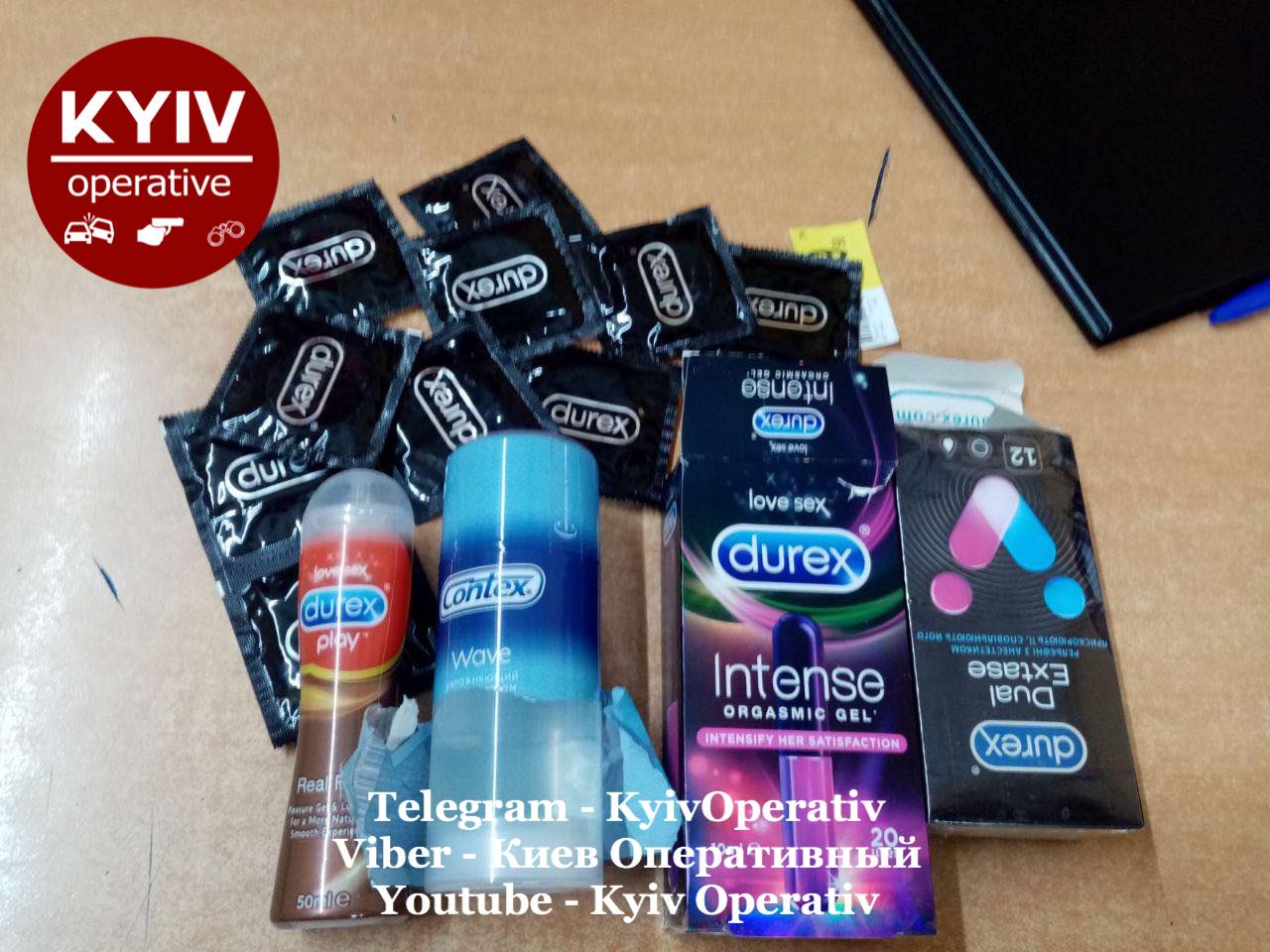 В Киеве мошенник украл из супермаркета кучу презервативов и смазку "Клубничка". Фото
