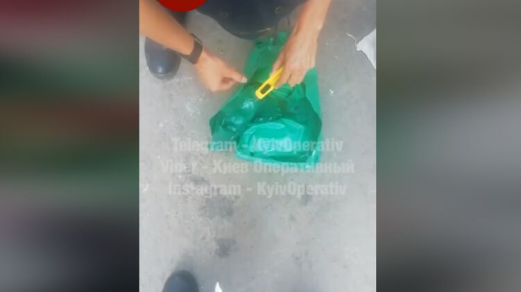 Так, на кадрах ролика двое мужчин в форме с шевронами вскрывают зеленый полиэтиленовый пакет с государственным гербом. Внутри они обнаруживают жидкость и нечто белое, похожее на личинок или червей.