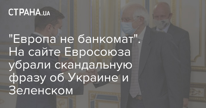 На сайте МИД Евросоюза пропала фраза о том, что "Европа - не банкомат и не благотоворительный фонд" для Украины, которую главный дипломат ЕС Жозеп Боррель адресовал Владимиру Зеленскому.