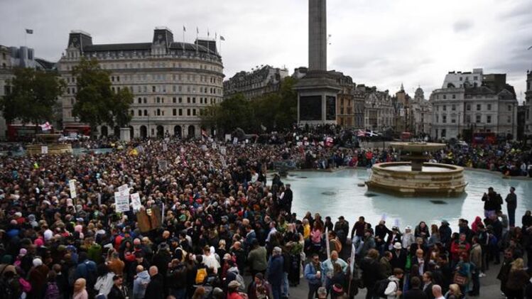 Так, сегодня протестующие собрались на Трафальгарской площади чтобы выступить против ужесточения карантина в Великобритании. Демонстранты вышли с плакатами, на которых написаны "Свободу!", "Covid-1984", "Мы не согласны" и другие лозунги. Митингующие массово не соблюдали социальную дистанцию и пренебрегали ношением медицинских масок. Из-за нарушения этих правил у правоохранителей появились законные основания разогнать акцию.