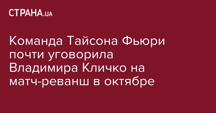 Как сообщала "Страна", украинский боксер в супертяжелом весе Владимир Кличко подаст в суд на Тайсона Фьюри из-за затягивания матча-реванша. Владимир Кличко отметил, что он устал ждать поединка с Тайсоном Фьюри, который всячески затягивает их бой-реванш, который должен состояться 29 октября.