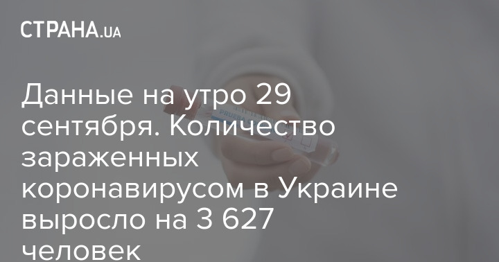 Данные на утро 29 сентября. Количество зараженных коронавирусом в Украине выросло на 3 627 человек