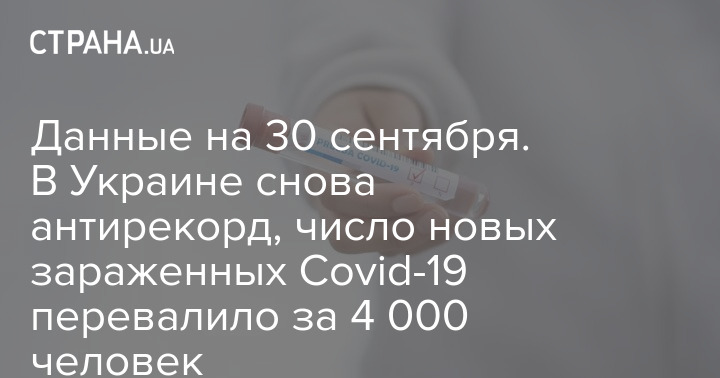 Данные на 30 сентября. В Украине снова антирекорд, число новых зараженных Covid-19 перевалило за 4 000 человек