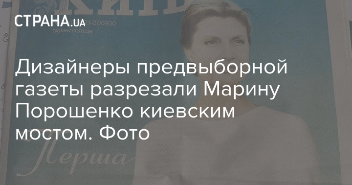 Дизайнеры предвыборной газеты для партии "ЕС" разрезали Марину Порошенко киевским мостом. Фото: Страна