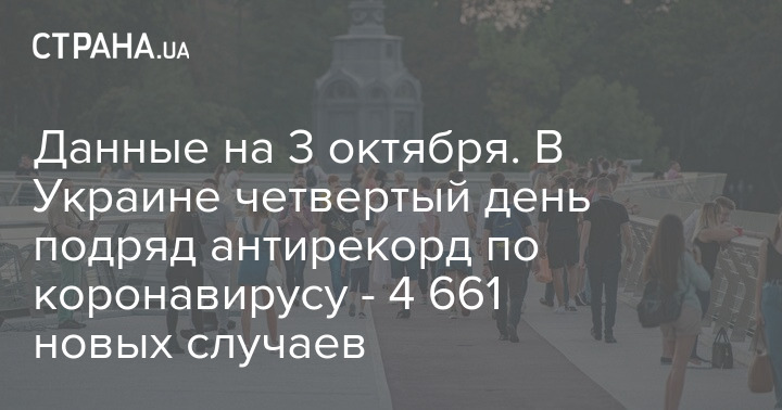 Данные на 3 октября. В Украине четвертый день подряд антирекорд по коронавирусу - 4 661 новых случаев