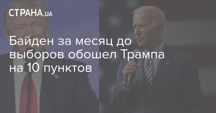 Кандидат в президенты США от демократов Джо Байден опережает своего соперника от партии республиканцев Дональда Трампа на 10%.