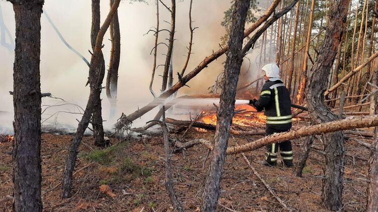 Так, спасатели сдерживают распространение огня, однако в результате пожара там начали детонировать неразорвавшиеся снаряды. Как отмечается, пожар начался в результате поджога.