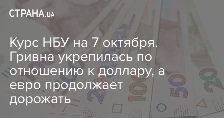 Национальный банк Украины обновил курс гривны по отношению к основным валютам на среду, 7 октября 2020 года. В частности, регулятор укрепил национальную валюту к доллару на 4 копейки, а евро продолжает дорожать. Немного поднялся в цене и российский рубль.